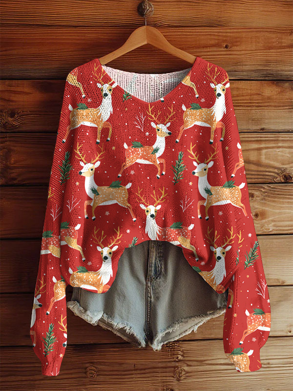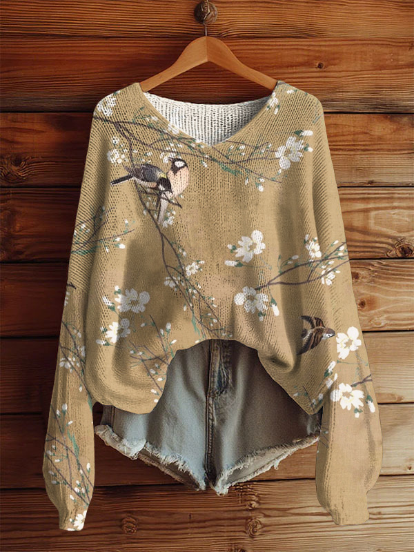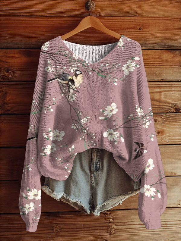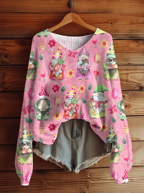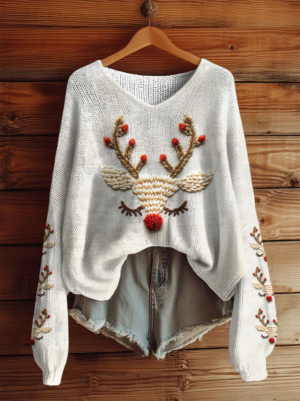 AutumnWinter V-Neck Loose 3D Knitted Sweater For Women